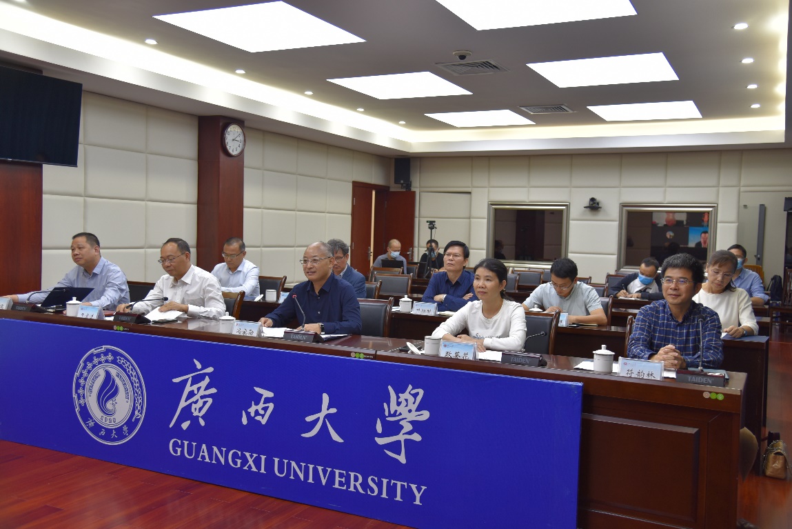 会议开始,冯家勋副董事长代表公司对5位专家的到来表示欢迎,简单介绍了太阳成集团tyc7111cc的基本情况及太阳成集团tyc7111cc在服务广西林业高质量发展中发挥的重要作用,同时希望各位专家对此次申报国家级教学成果奖的项目多提宝贵意见。