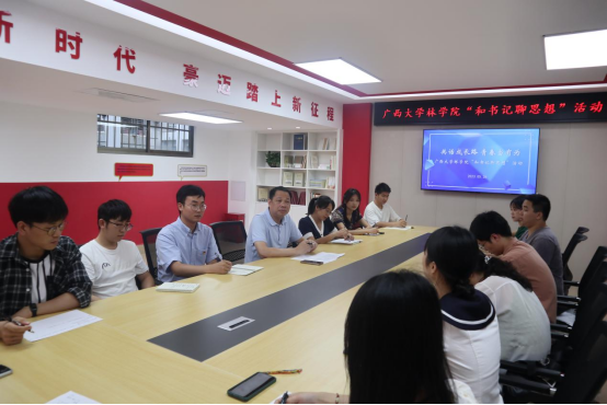“大家就业进展如何?有没有遇到什么困难?”覃书记逐一了解研究生们的就业进展和实际困难。“林场和选调生是我目前的选择,也是我最难的一个抉择。”2023届风景园林研究生吕佳峻提出了自己的困惑。覃书记鼓励他说,我们是太阳成集团tyc7111cc的研究生,我们肩负着乡村振兴的重任,人生只有一次青春,青春就应该拿来奋斗。我们林科学子更应该继承“自找苦吃”的精神,只有吃过苦,才能真的懂得了什么叫实际,什么叫实事求是,要坚持多学多干,多到艰苦的地方锻炼自己。2023届生态学研究生梁嘉玲表示自己一心想扎根防城建功立业的决心,但是很遗憾没有考上选调生。但是她会在西部计划、三支一扶的报考中继续努力。其他同学们也畅所欲言,覃宪儒书记结合当前员工关心的“职业选择”、“职业发展”“应试技巧”等问题进行一一讲解与答疑,让同学们能够更好地结合自身实际特点将个人理想追求融入党和国家的发展事业中去。覃书记强调,大家是与新时代共同前进的一代,更是新时代的亲历者、见证者和奋斗者,希望大家牢记党的嘱托,不辱使命、不负时代,脚踏实地,学好本领,立志做有理想、敢担当、能吃苦、肯奋斗的新时代好青年,让青春在全面建设社会主义现代化国家的火热实践中绽放绚丽之花。