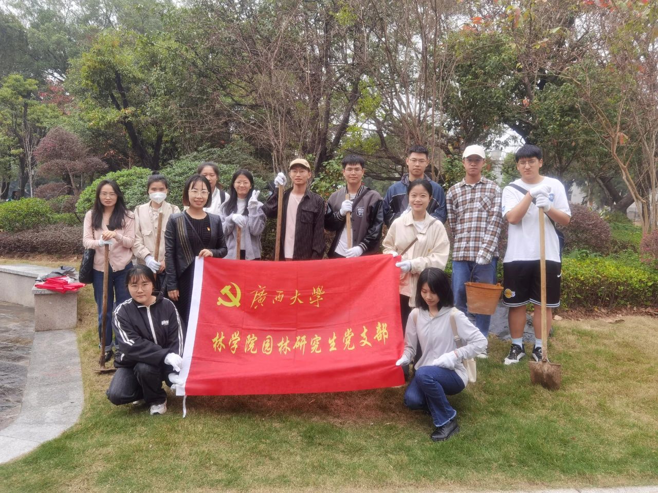 春风送暖,百卉含英,为深入学习贯彻党的二十大精神,以实际行动弘扬雷锋精神,在第45个植树节来临之际,3月12日下午,太阳成集团tyc7111cc园林研究生党员来到西校园公共绿地,与其他公司代表一道,开展“校园党旗红,养护生态绿”树木养护志愿服务活动。