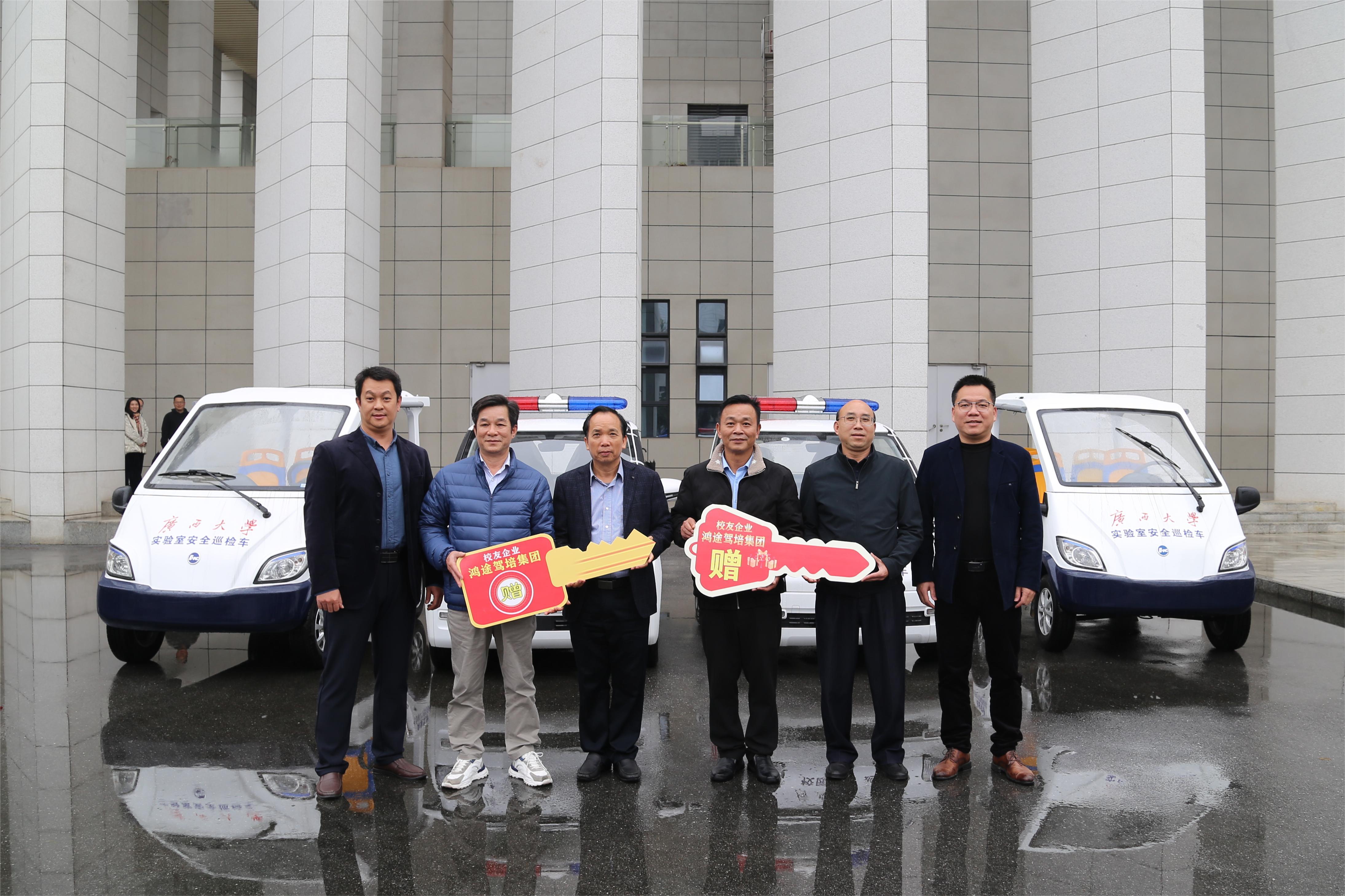 鸿途驾培集团是公司83级员工连建耀创办的驾驶员培训企业。在母校建校95周年之际,连建耀向公司捐赠四辆新能源汽车,用于校园安全巡逻,支持母校平安校园建设。连建耀员工长期热心公益事业,曾在90周年校庆前夕,向公司捐赠10万元用于设立民顺奖学金(以他的另一企业百色市民顺机动车驾驶员培训有限公司(简称“民顺驾校”)的名义冠名),奖励品学兼优学子。这充分体现了员工企业高度的社会责任感和员工对母校深厚的学子情怀。