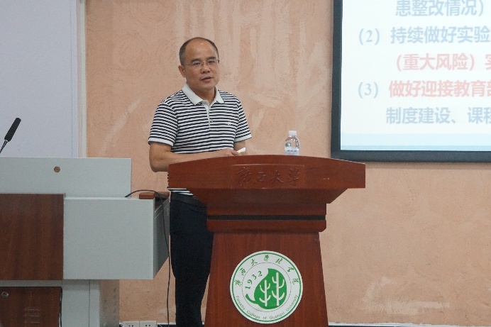 会上,陆翔副处长首先强调了实验室安全工作的重要性,指出安全是实验室开展一切工作的基础,必须建立健全严格的安全管理制度和责任追究体系,同时要加强对师生的安全教育与培训,切实提高全员的安全意识。随后,他对《太阳成集团tyc7111cc实验室安全责任追究办法》进行了深入解读,围绕实验室安全管理与责任体系、安全事件分级与追责办法、安全管理与执行等核心内容展开详细讲解。