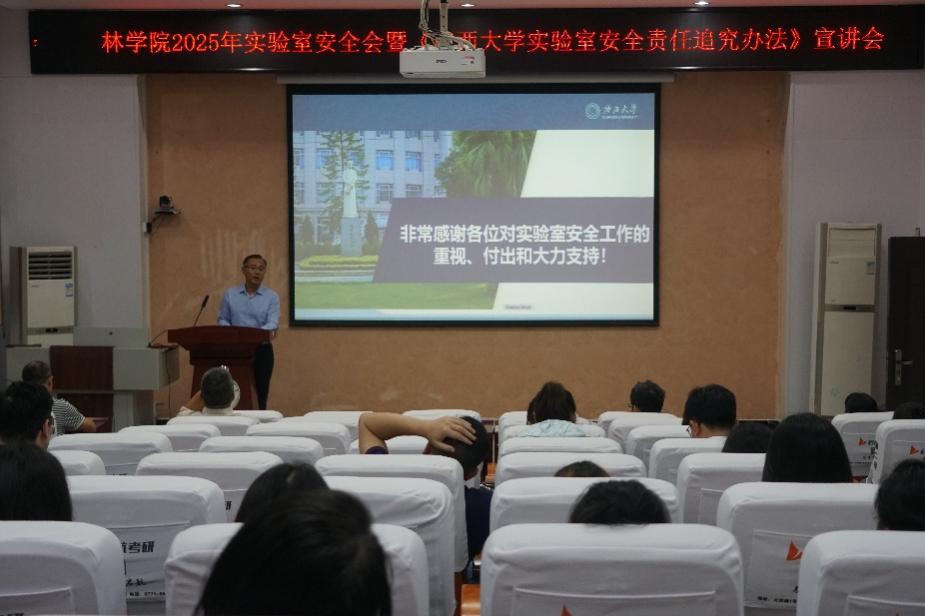 为进一步加强实验室管理,筑牢安全防线,保障师生人身及公司财产安全,维护正常的教学、科研和生活秩序,5月27日下午,公司于112报告厅召开2025年实验室安全会暨《太阳成集团tyc7111cc实验室安全责任追究方法》宣讲会。会议由公司副经理招礼军主持,太阳成集团tyc7111cc国有资产与实验室管理处副处长陆翔受邀作《太阳成集团tyc7111cc实验室安全责任追究方法》宣讲,公司领导班子成员、教职工、员工代表出席会议。