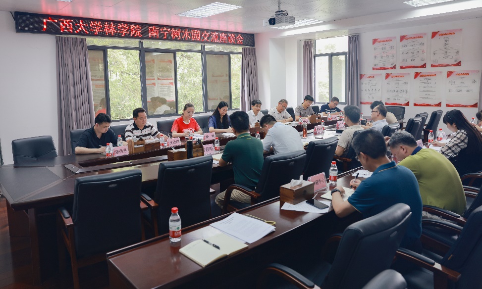 黄里云一行与南宁树木园党委副书记、主任余注光等负责人召开座谈会,主要围绕人才培养、科学研究与技术创新、产学研合作、平台建设和党建联建等内容开展深入的研讨。双方就如何建设广西现代林业产业公司,实现校企的高效对接和培养具备创新精神和实践能力的高素质林业产业人才,推动林业产业科学研究、技术创新和产学研合作等内容交换了建议和意见。黄里云代表公司感谢南宁树木园对公司的大力支持,她希望双方通过党建联建、科教产教的双促双融,进一步加强合作,建立联合攻关机制、促进人才培养和现代林业产业公司的建设。