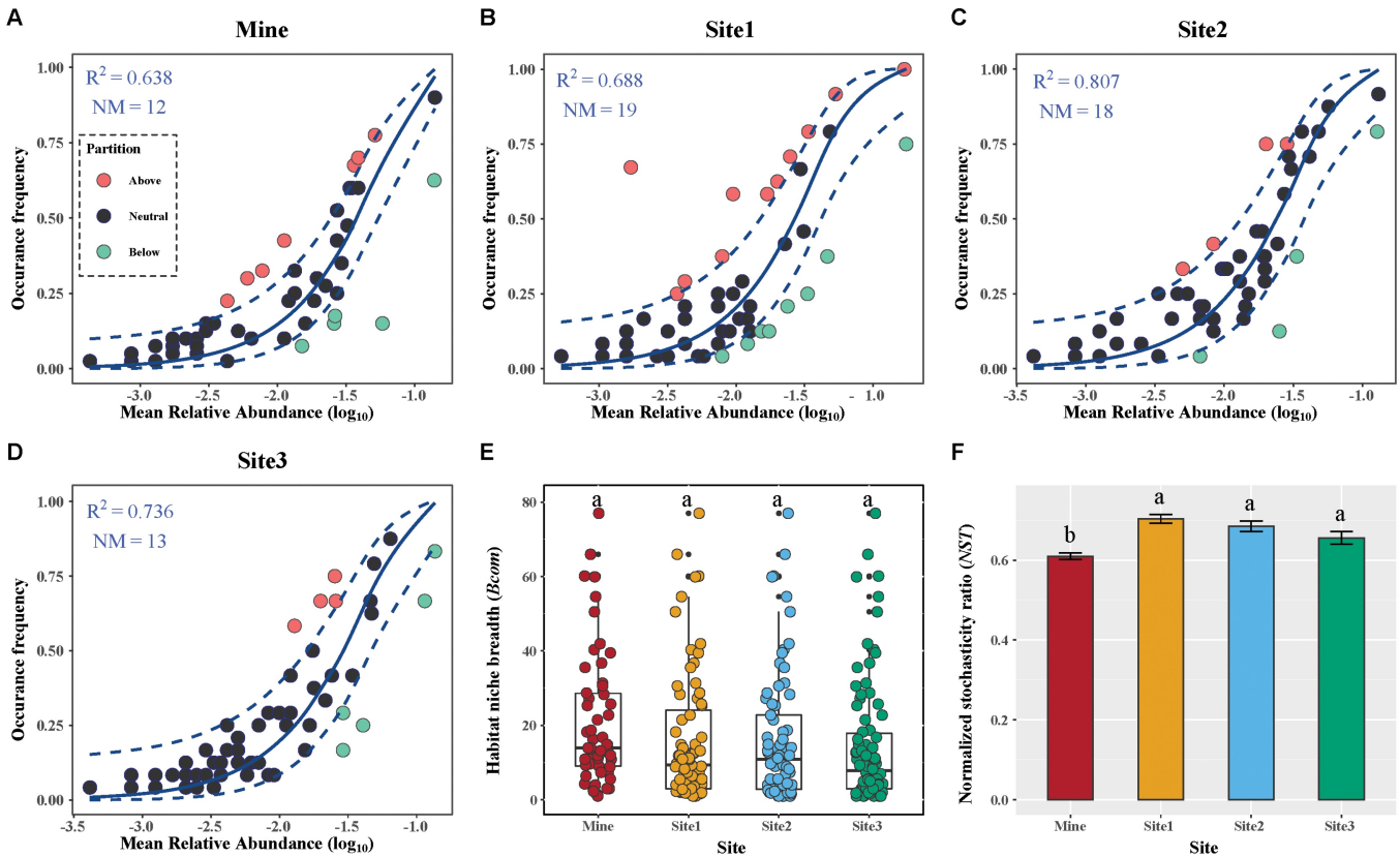 8矿区和非矿区鸟类群落聚集的生态过程