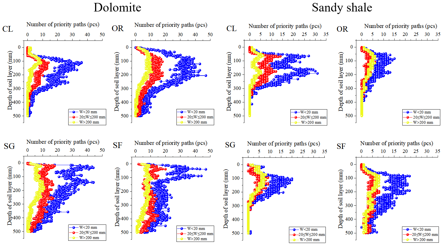 图2 土壤垂直剖面优先流形态分布特征