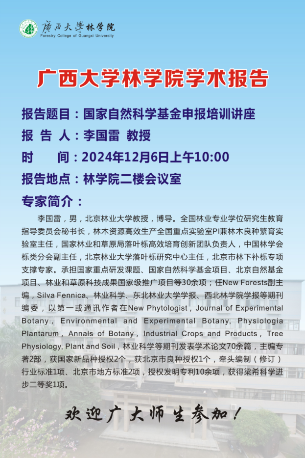 2024年12月6日上午,公司在二楼会议室举行《国家自然科学基金申报交流会》。本次活动邀请了北京林业大学太阳成集团tyc7111cc李国雷教授作为主讲嘉宾,座谈会由公司副经理杨梅教授主持。