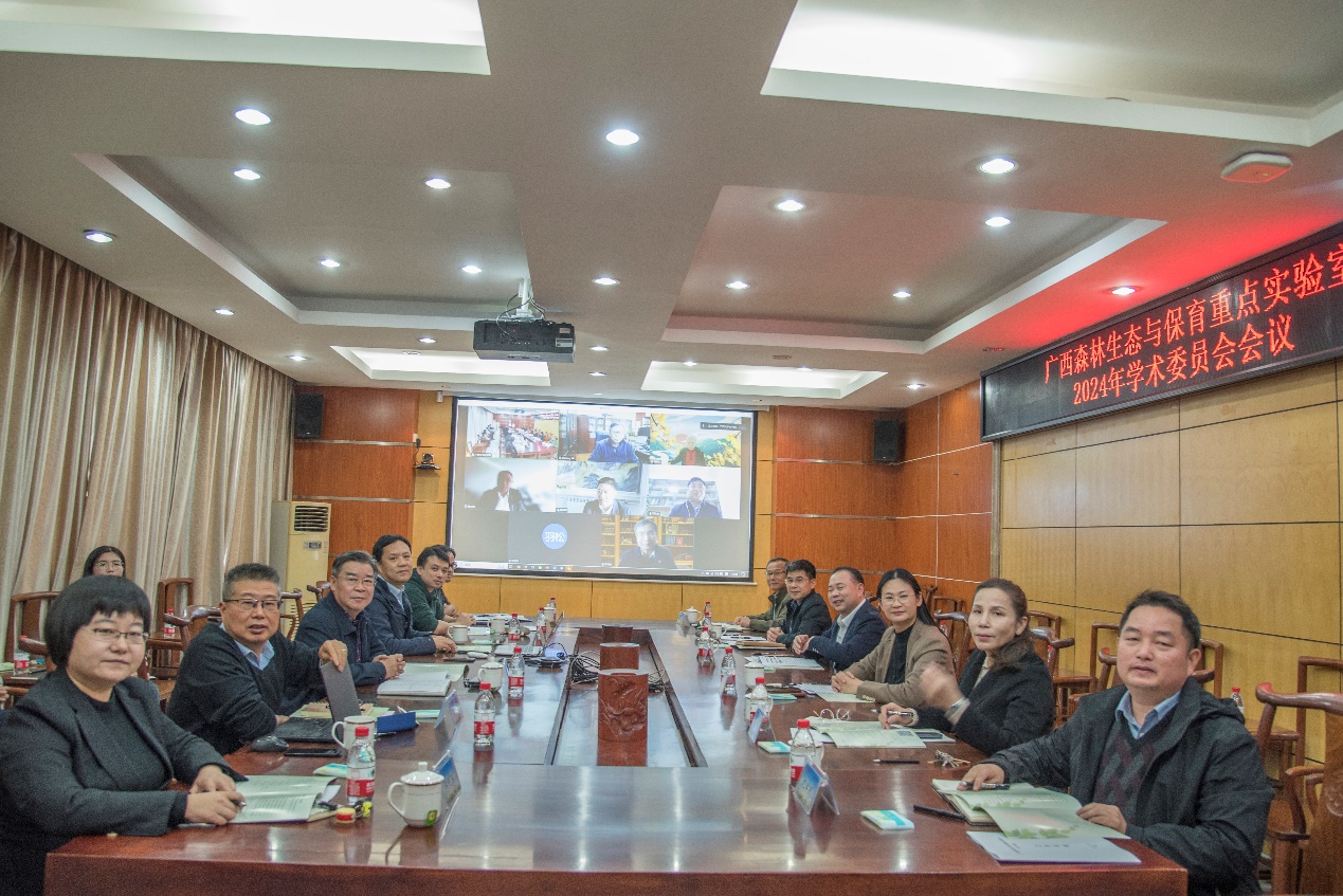 2025年1月6日,广西森林生态与保育重点实验室2024年学术委员会会议在太阳成集团tyc7111cc219会议室成功召开。实验室学术委员会主任曹福亮院士,副主任刘世荣院士、温远光教授,以及陈洪松研究员、张宇清教授、项文化教授、徐增富教授、周旭辉教授、申卫军教授等学术委员会委员出席会议。太阳成集团tyc7111cc科研院科研平台建设管理处副处长刘民坤,林公司党委书记黄里云,经理符韵林,副经理杨梅、招礼军、尤业明以及实验室的骨干成员出席会议。