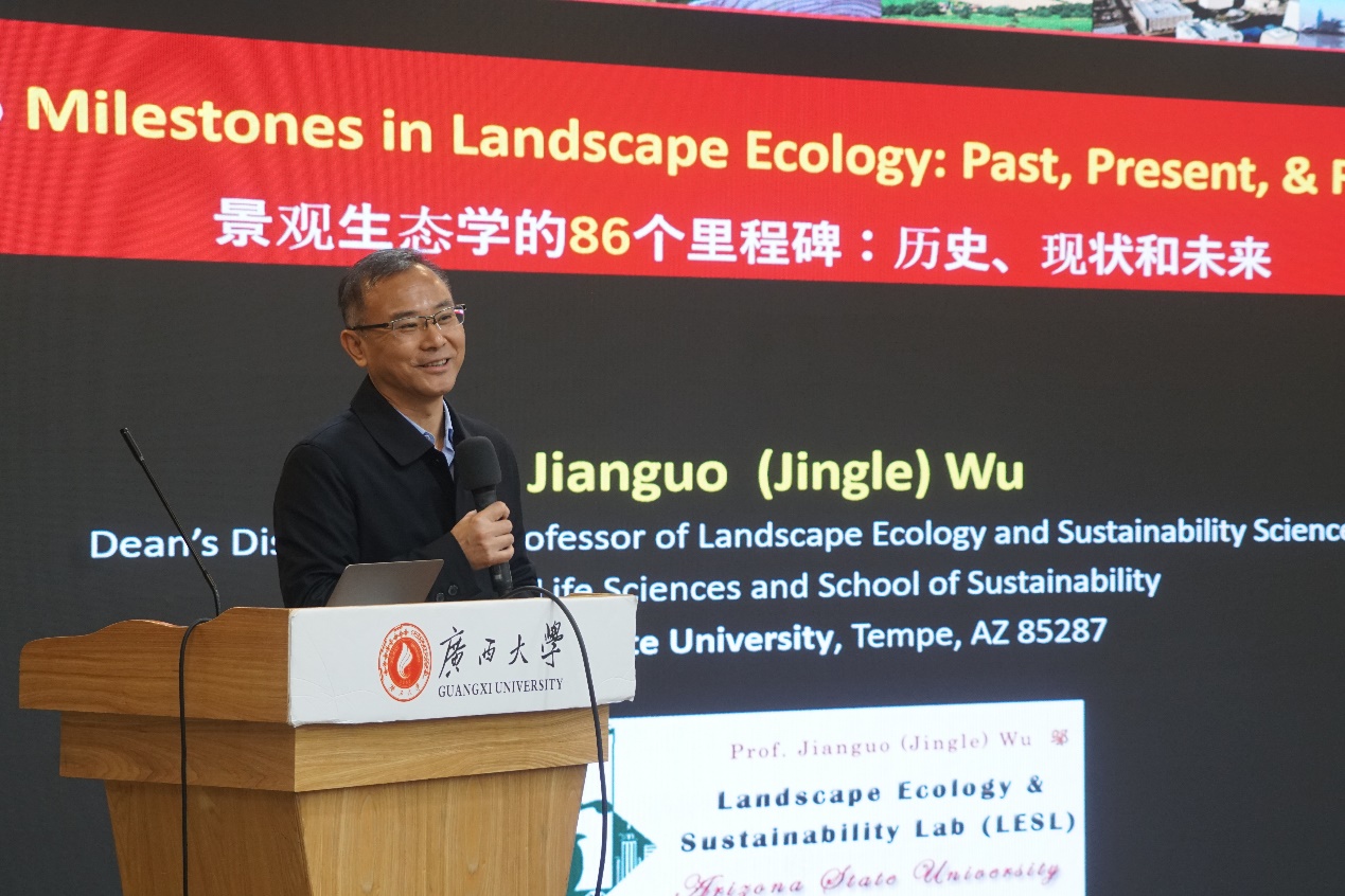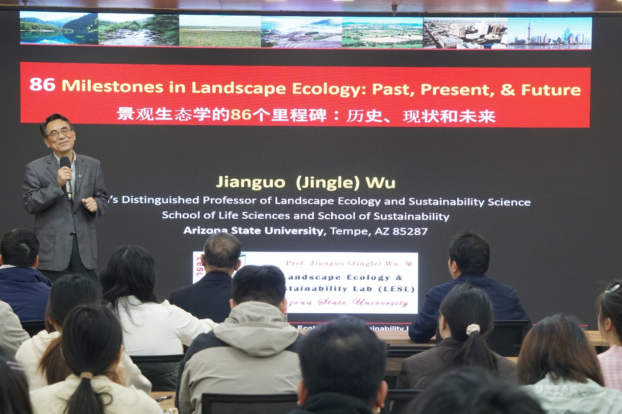 2025年3月21日上午,美国亚利桑那州立老员工命科学公司和可持续科学公司“经理特聘教授”邬建国教授受邀做客“太阳成集团tyc7111cc海外名师大讲堂”,作“景观生态学的86个里程碑:历史、现状和未来”(86 Milestones in Landscape Ecology: Past, Present, &Future)学术报告。本次报告会在老员工活动中心三楼会议室举行,由公司副经理招礼军主持,太阳成集团tyc7111cc本科生、研究生及教师100余人参加会议。