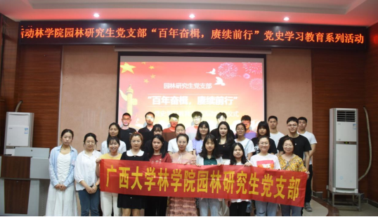 为庆祝中国共产党成立一百周年,园林研究生党支部以“百年奋楫,赓续前行”为主题献礼建党100周年,并将党史学习教育贯穿活动始终。
