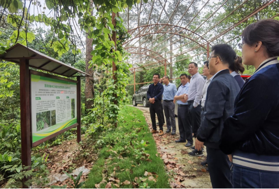 调研组深入国有七坡林场吴圩场部,先后调研了广西东盟(南宁)林业科技示范园区、七坡林场国家储备林基地建设项目桉树纯林改培示范点和桉树大径材培育示范点、七彩七坡林下经济产业示范区,双方就本科公司产品审核评估工作、院毕业生发展情况以及项目拓展、校企共建、资源整合等方面进行了深入交流,并就如何搞好主题教育,一体推进产学研深度融合交换了意见。