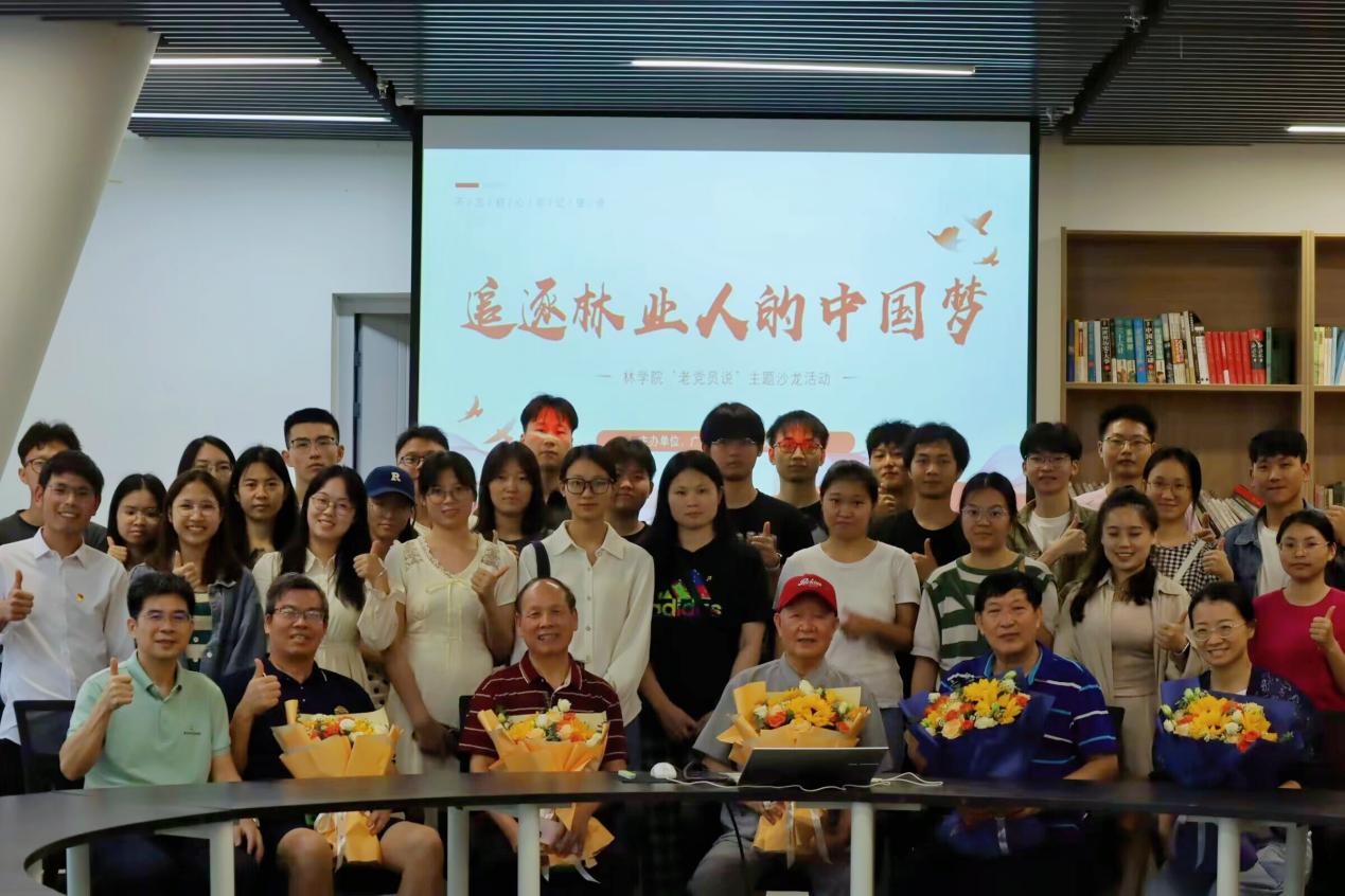最后,梁宏温教授分享了自己的林业故事,号召大家向优秀党员看齐,热爱林业行业,做好本职工作。他强调要树立绿色发展理念,积极参与生态文明建设,从身边的小事做起,保护每一片绿叶、珍惜每一滴水。梁教授勉励同学们“不忘初心跟党走,立大志,树理想,为实现中华民族伟大复兴的中国梦不断奋斗”。