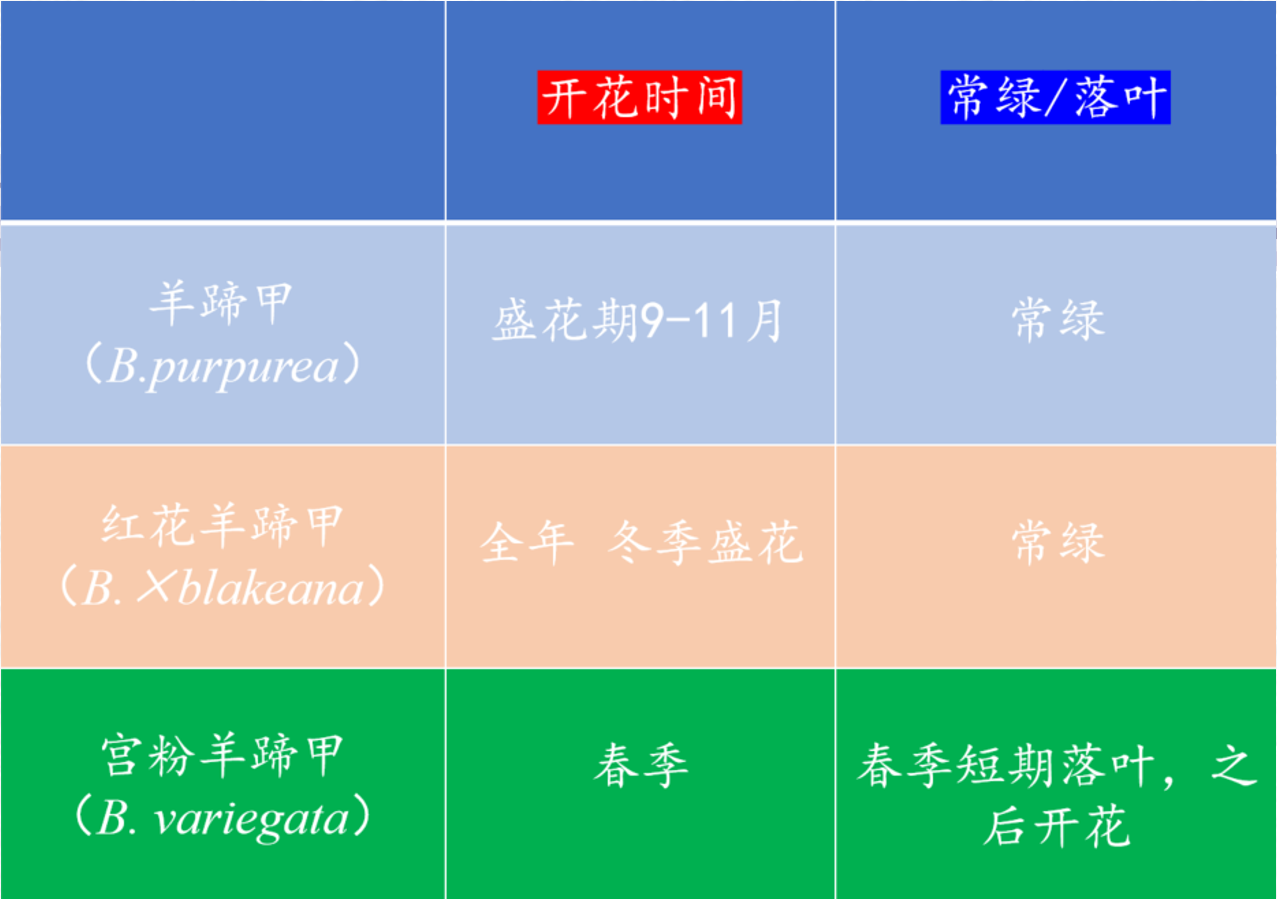 红花羊蹄甲、羊蹄甲、宫粉羊蹄甲的区别