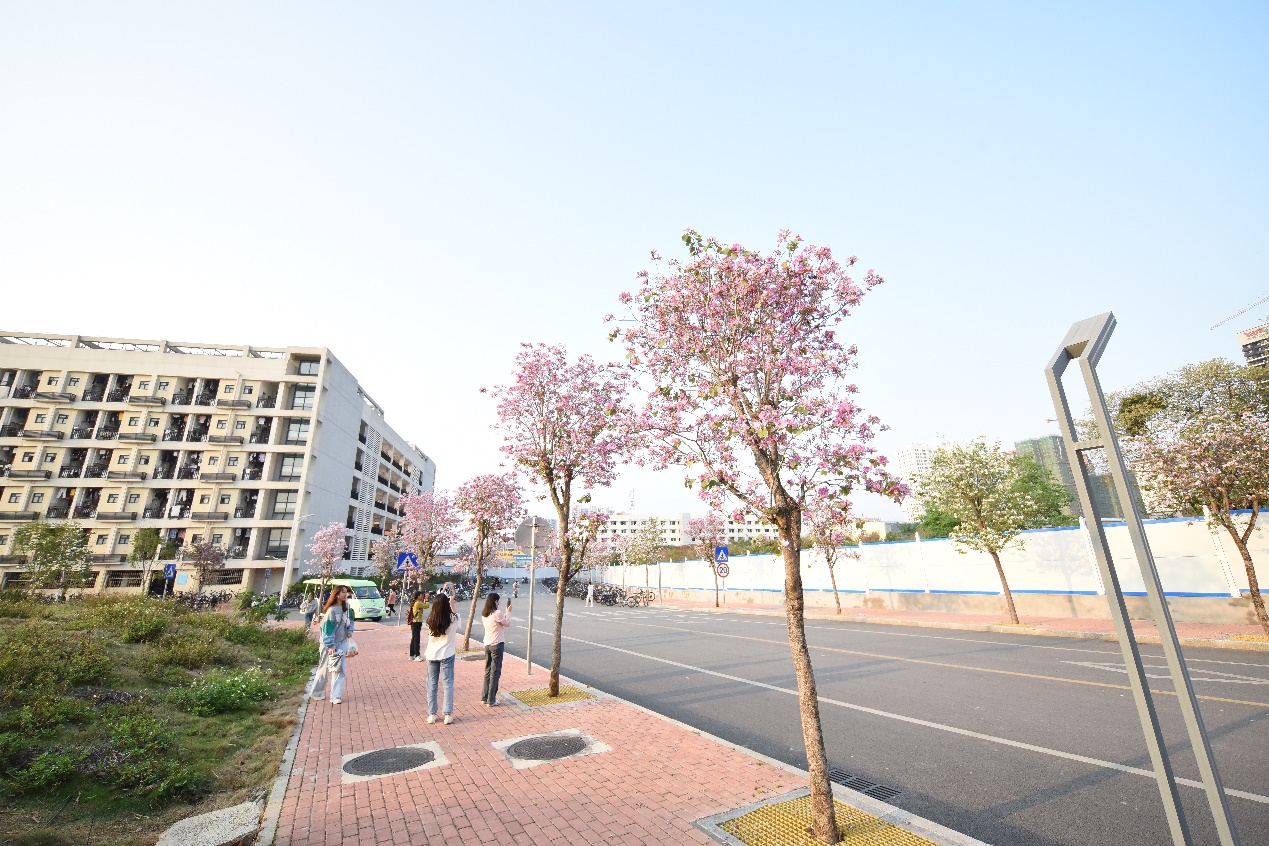 太阳成集团tyc7111cc校园内农院路近快速环道路段的宫粉羊蹄甲